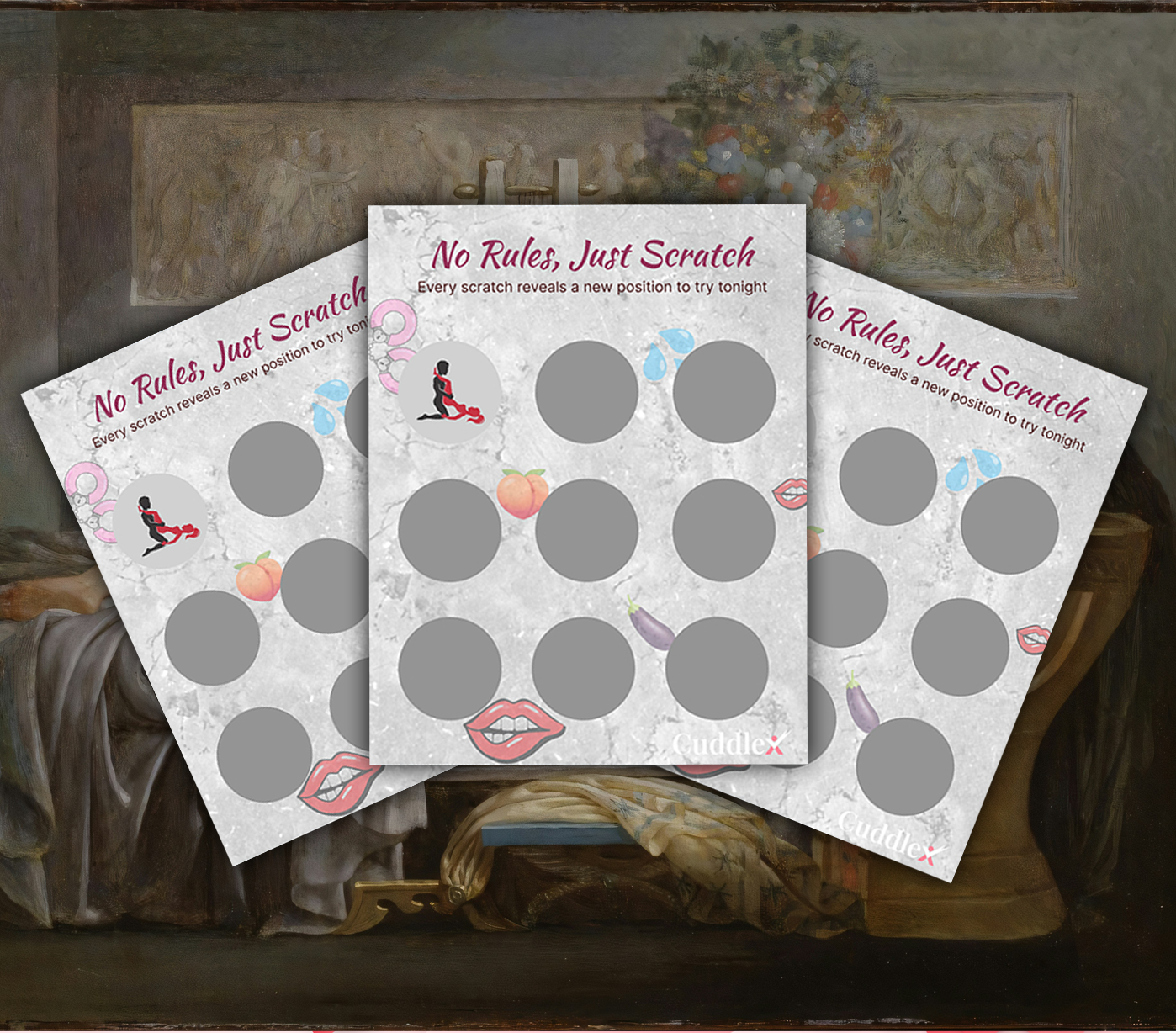 Scratch the foil to uncover a hidden position for you and your partner.